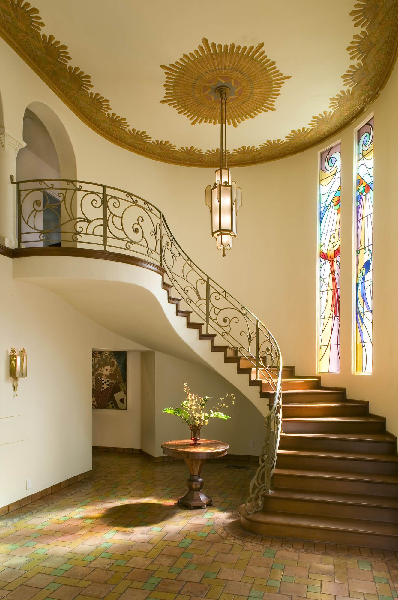 A masterful blend of preservation and luxury, La Cañada Art Deco is a testament to Everage Design's dedication to timeless elegance. This grand 1920s Art Deco-Mediterranean estate was meticulously restored, expanded, and furnished to honor its rich heritage while embracing modern refinement. From re-casting the intricate facade and crafting a period-correct terracotta floor to reviving exquisite stained glass, frescoes, and Art Deco light fixtures, every detail was thoughtfully reimagined. Tripling the square footage, the home now boasts a gourmet kitchen, a sophisticated library, a spa, a home theater, and more - each space enriched with carefully curated antiques and artwork sourced from Europe. The result is an exquisite harmony of old-world grandeur and contemporary luxury.