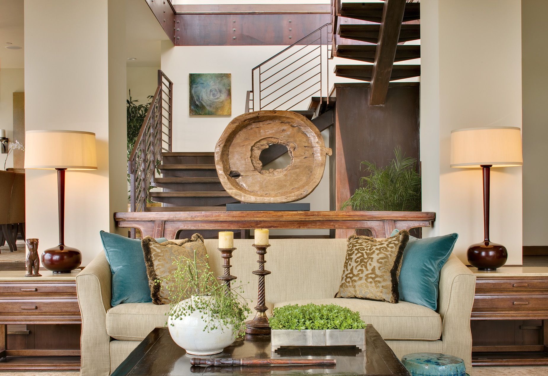 Nestled into the hills of Brentwood, Mandeville Canyon Rustic Modern Retreat seamlessly blends the ease of modern living with the warmth of organic, durable materials - perfectly suited for this vegan bachelor and his pups. The open, loft-like floor plan is grounded by textured plaster walls, stacked stone, and a striking patinated steel staircase, a sculptural centerpiece designed by John Everage. Thoughtfully curated artworks and bespoke furnishings, handcrafted in DTLA by Everage Design Workshop, add depth and individuality to the space. The result is a sophisticated yet relaxed sanctuary where modern minimalism meets timeless craftsmanship.
